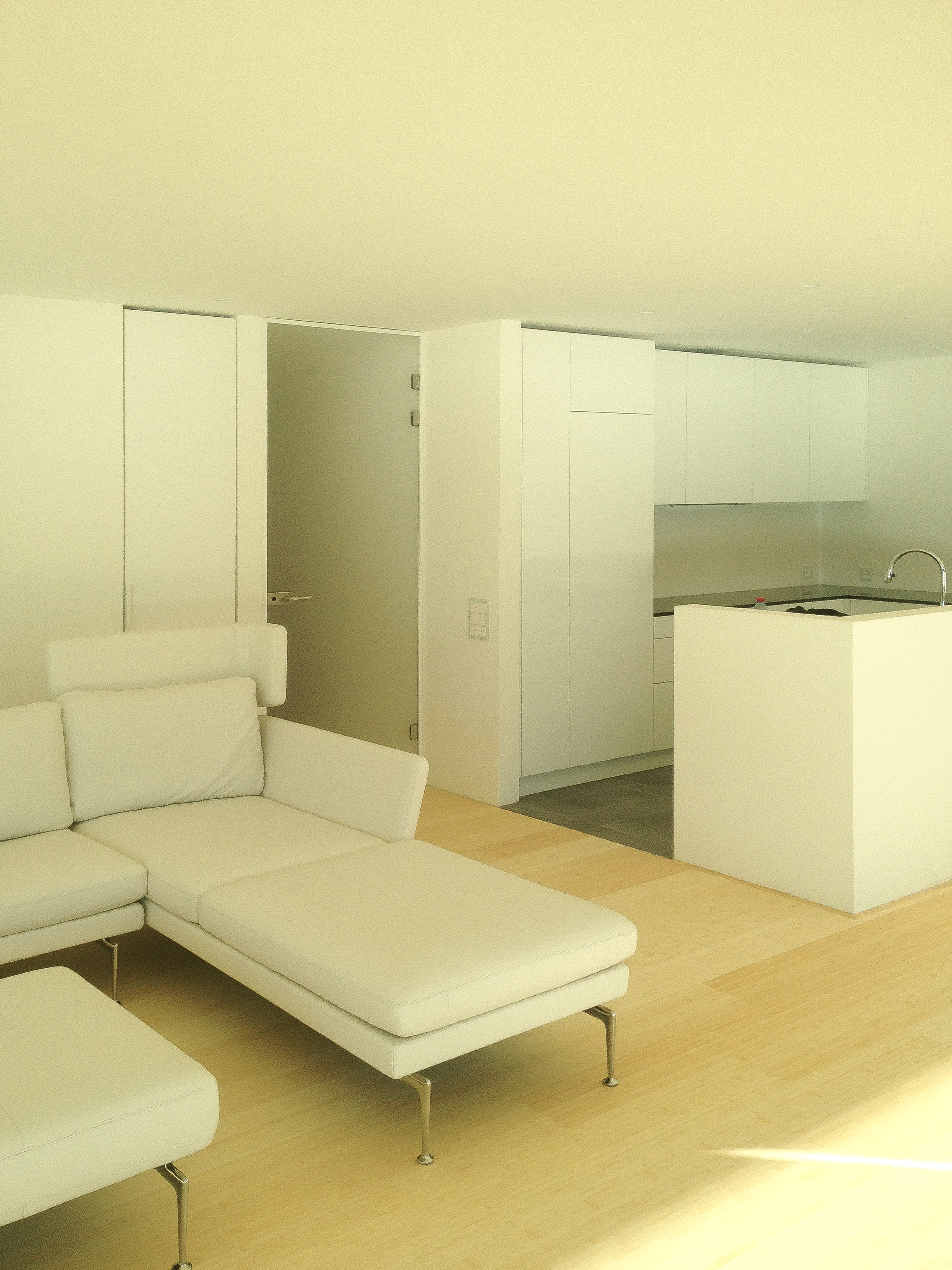 Bei diesem Eingriff wurde die Küche in den Wohnraum verlegt und anstelle des Küchenraumes eine Verbindung zwischen Badezimmer und Schlafraum hergestellt.