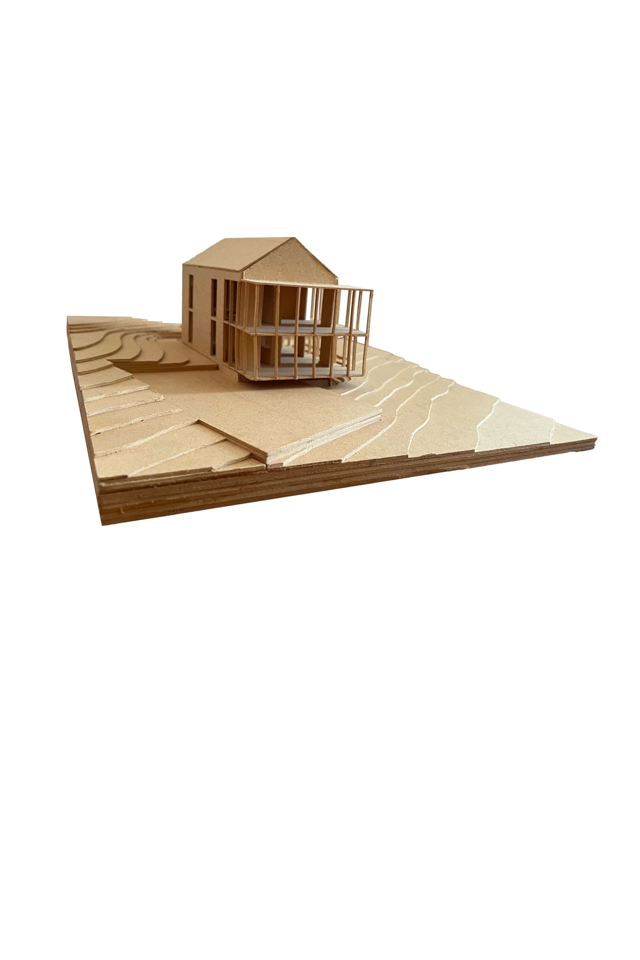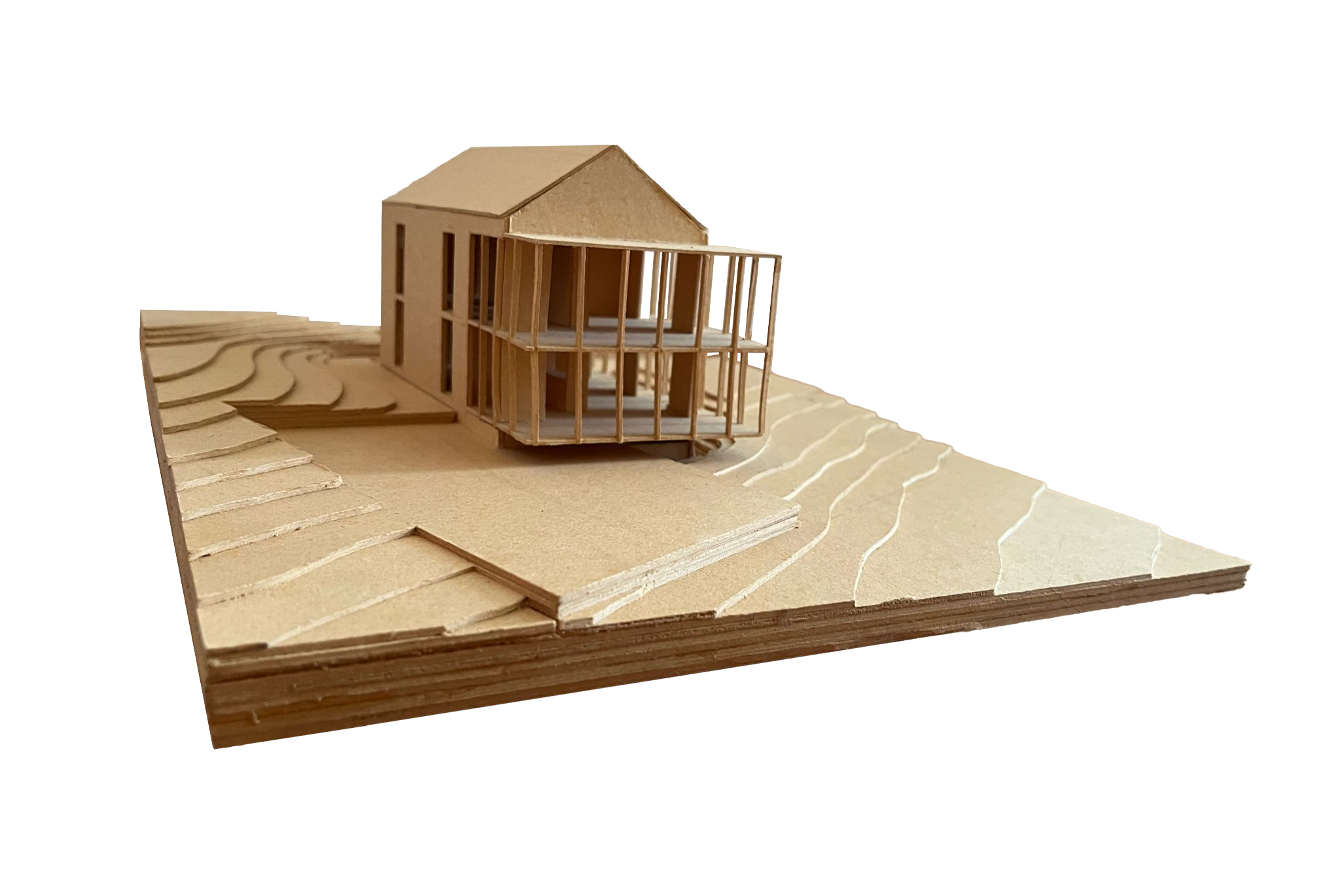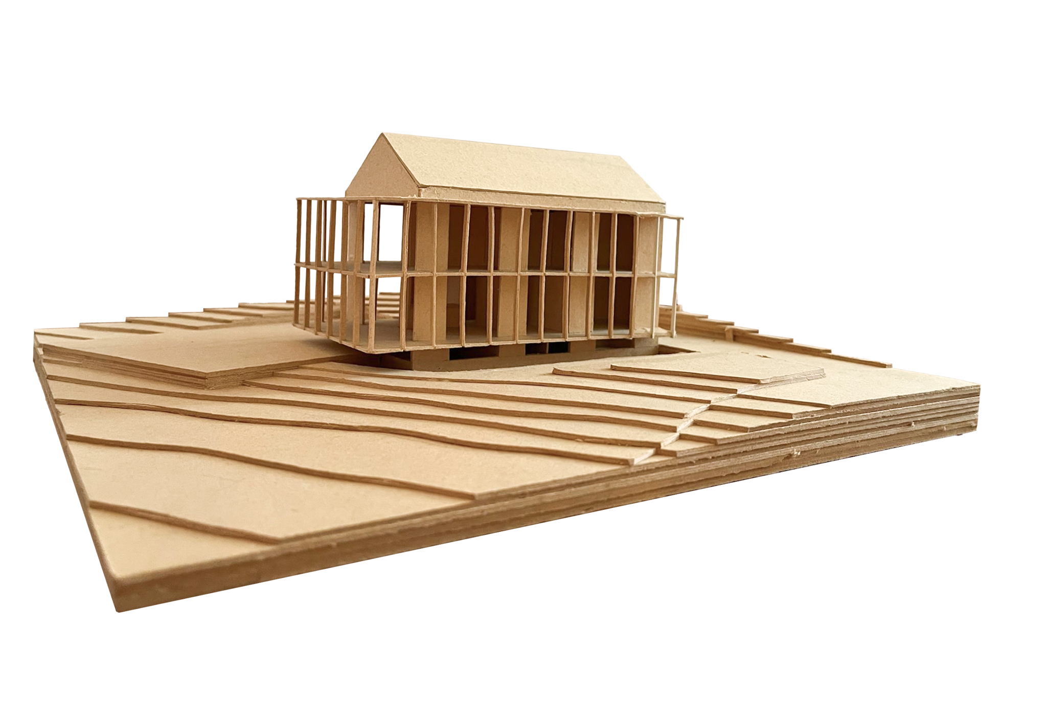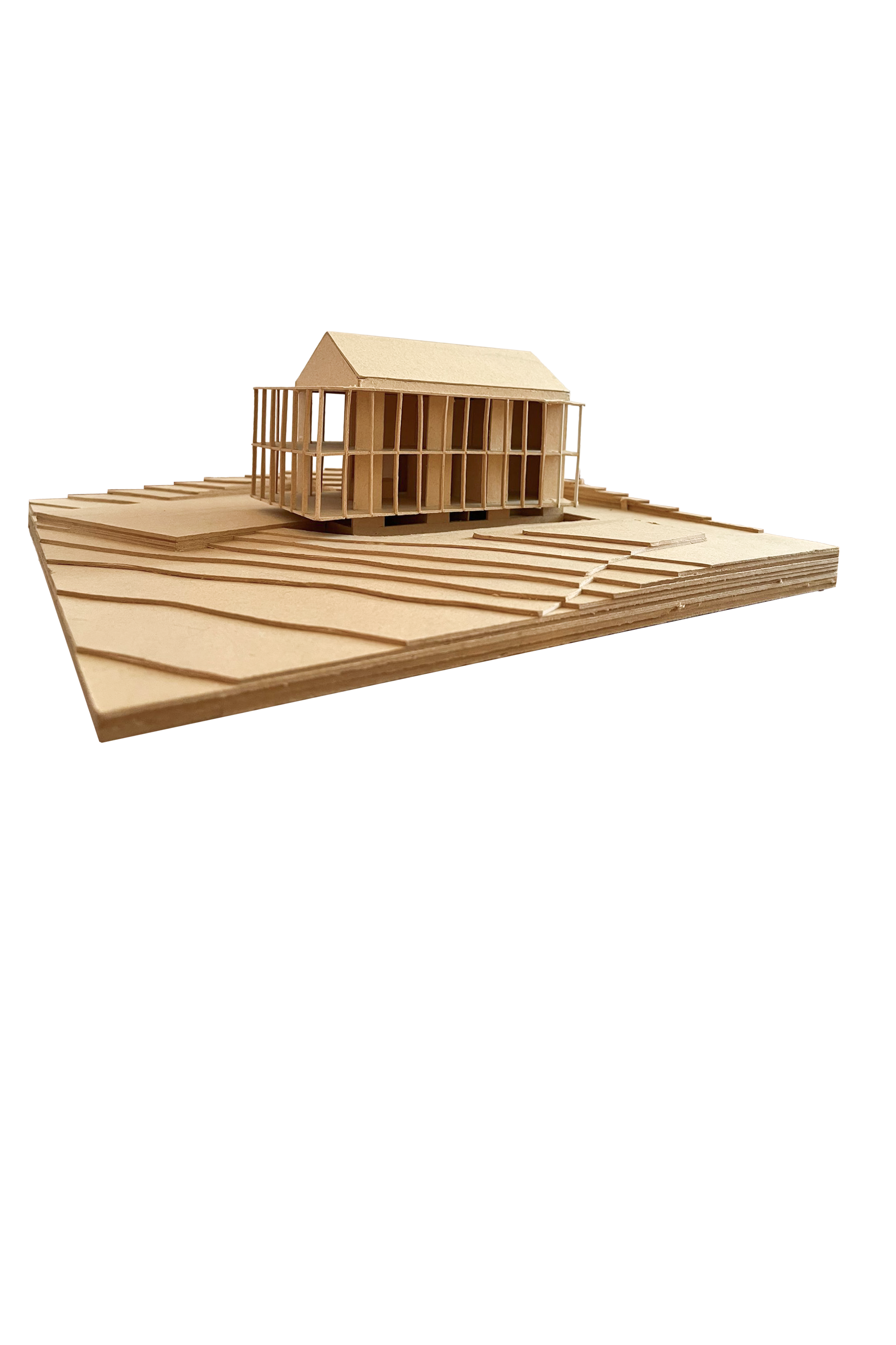 Innerhalb von fünf Monaten konnte so ein Einfamilienhaus entstehen, das sich in die Typologie der umliegenden, ländlichen Gebäude einfügt.